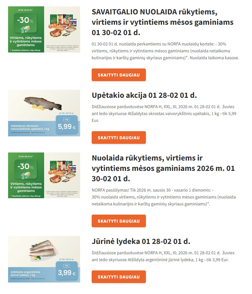 Jų asortimente rasite ne tik būtiniausius maisto produktus (vaisius, daržoves, duoną, kepinius iš vietos kepyklėlės), bet ir gėrimų, higienos priemonių, namų ūkio prekių, gyvūnų maisto bei sezonių prekių – viskas nuolaidose . Leidiniai pateikiami aiškiai ir patogiai, kad galėtumėte efektyviai planuoti pirkinius ir sutaupyti.